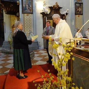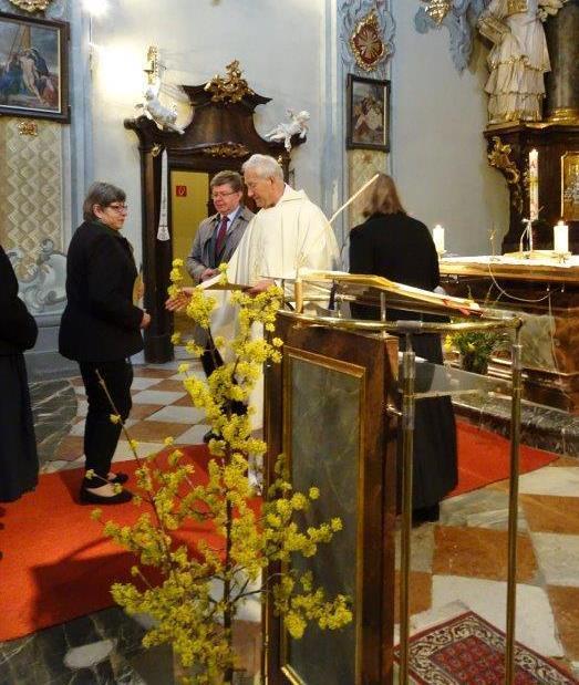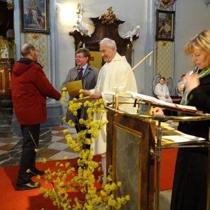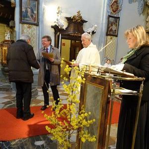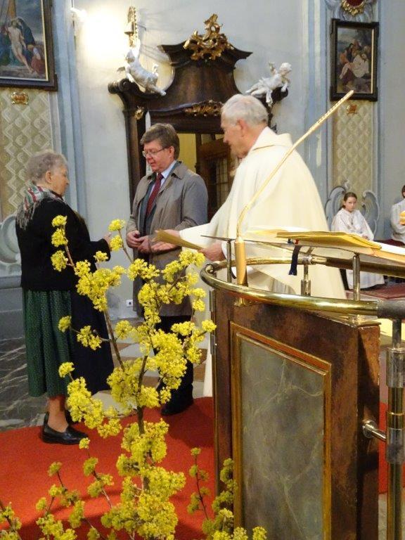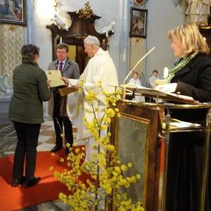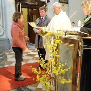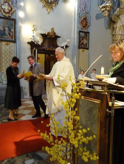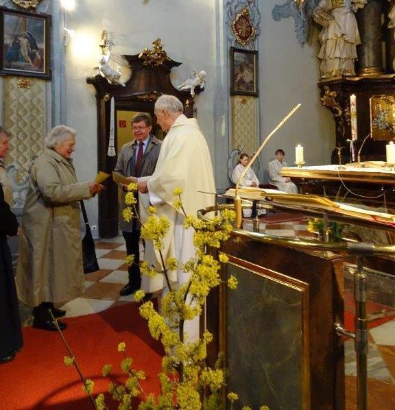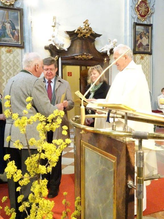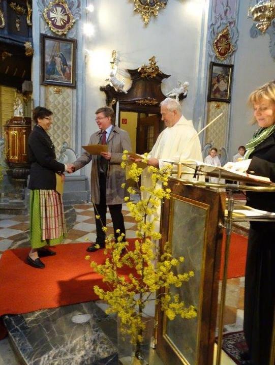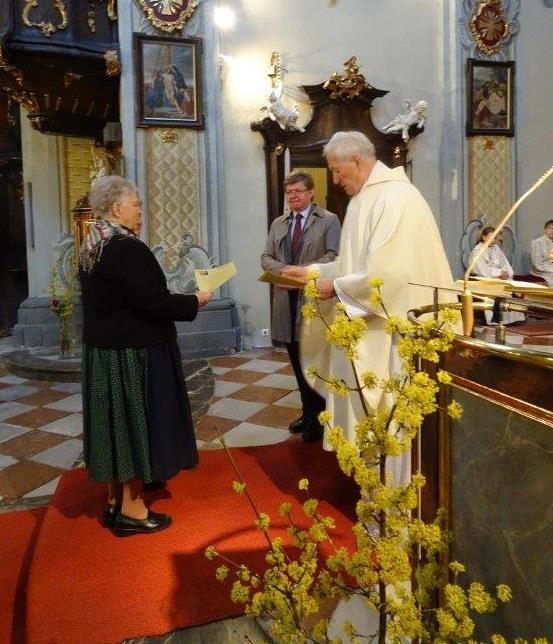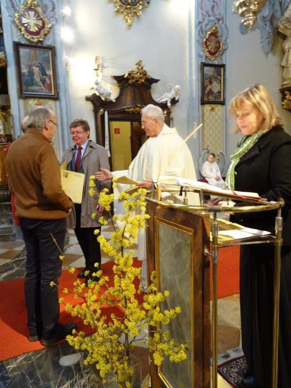 Am Weißen Sonntag wurden alle Caritas-Sammlerinnen und Sammler zur 8 Uhr-Messe in die Pfarrkirche eingeladen. Im Anschluss an den Gottesdienst nahm der Direktor der Caritas Steiermark, Mag. Herbert Beiglböck, unterstützt von der Regionalkoordinatorin Steiermark Mitte, Frau Sabine Spari und Pater Simon, die Verleihung der Urkunden vor, an alle fleißigen Frauen und Männer, die sich in den letzten 30 Jahren einmal oder mehrere Male im Dienst der guten Sache für Hilfsbedürftige gestellt haben. Auch an die bereits verstorbenen SammlerInnen wurde gedacht und ihnen postum der Dank ausgesprochen.