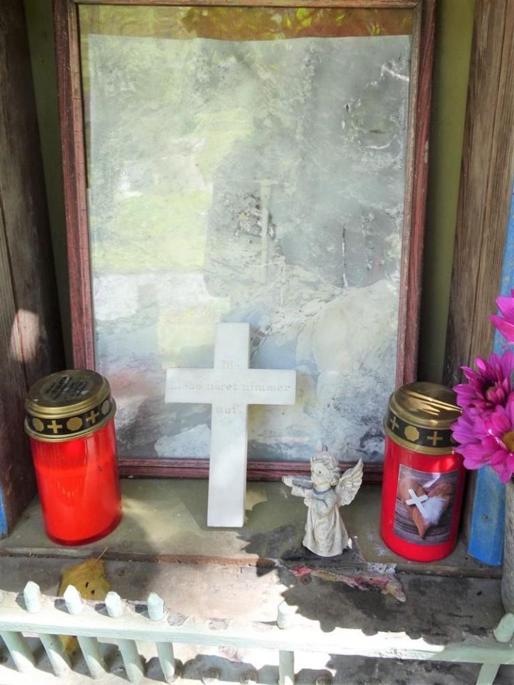 An christlichen Festtagen und Sterbetagen der Familienangehörigen werden bei dem einmaligen Marterl Kerzen angezündet und Blumen hingestellt.