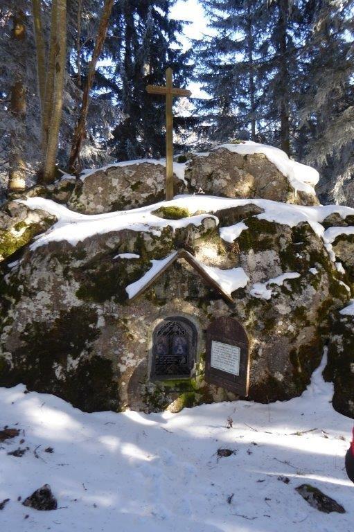 Die Errichtung dieser Andachtsstätte wurde von der Familie Anastasia und Georg Handl, den Vorfahren der Familie Zöhrer, veranlasst. Die Erbauer hatten sich mit ihren Initialen und dem Jahr der Gründung - „19.G.A.H.03“ - auf diesem Felsen verewigt.