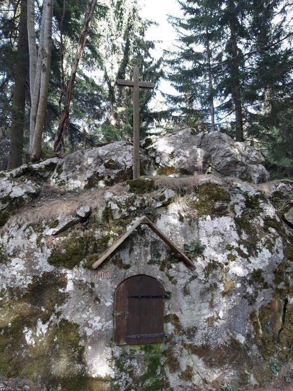 Am Rande einer Waldwiese des Anwesens Zöhrer vlg. Felber in ca. 1.150 m Seehöhe und abseits des Wanderweges 531 steht auf einem Felsbrocken ein sehr schönes, aber eher unbekanntes Zeichen des Glaubens: das Schiffall-Kreuz.