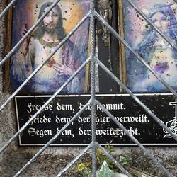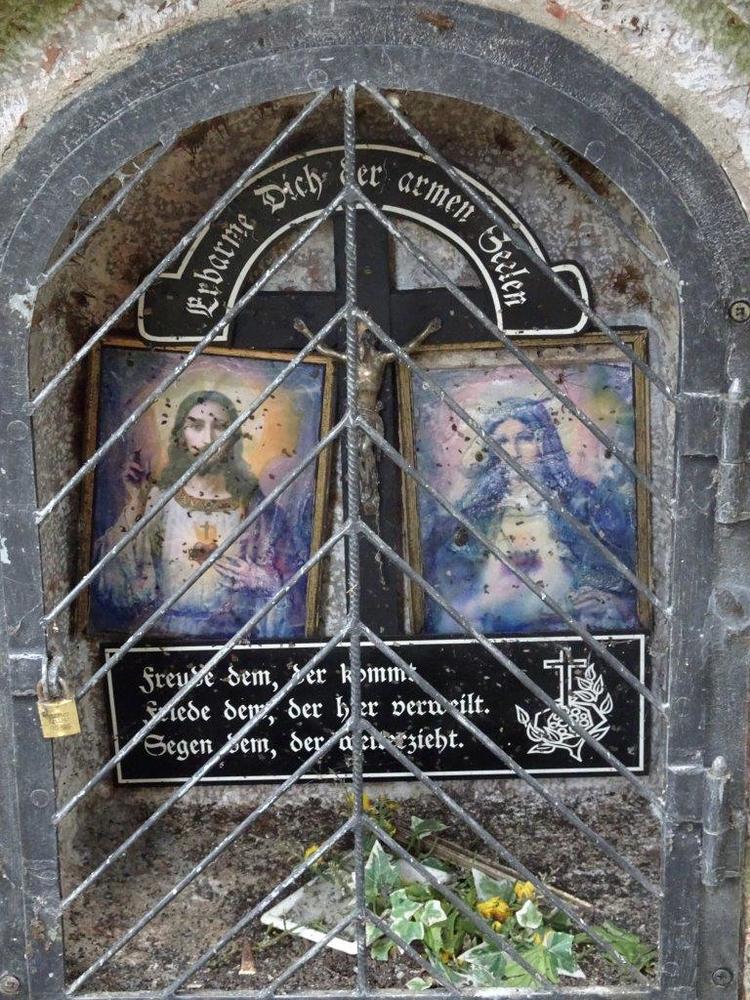Über diesem ist ein halbrundes Schild mit dem Wortlaut: „Erbarme Dich der armen Seelen!“ befestigt.