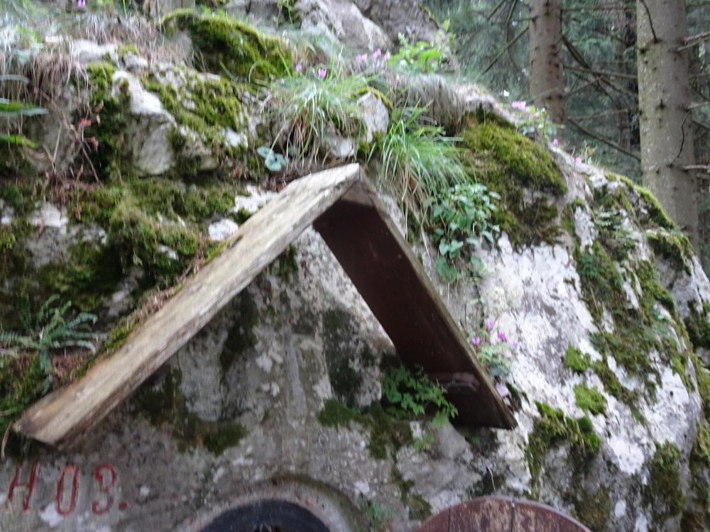 Zum Schutze des Marterls vor Witterungseinflüssen wurde darüber ein einfaches Holzdach am Fels montiert und eine Holztür zum Verschließen angebracht. An deren Innenseite ist auf einer Tafel zu lesen: