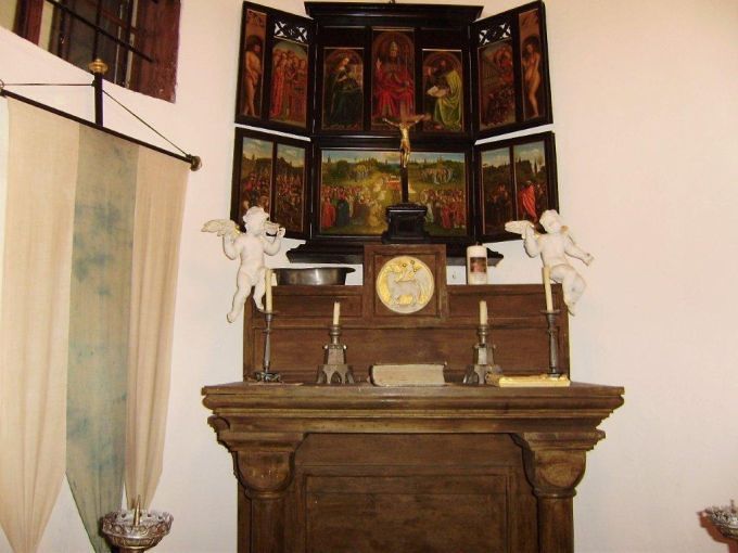 Die im 12. Jahrhundert erbaute Burg Rabenstein ist wohl eine der imposantesten Burganlagen des ganzen Murtales. Die Altburg, aus der heute ein moderner Stahl-Glas-Bau von Burgherrn DI Werner Hochegger ragt, brannte ab und wurde nicht wieder aufgebaut. Die heutige Burg wurde im 14. Jahrhundert errichtet und befand sich in landesfürstlichem Besitz. Aus dieser Zeit stammt vermutlich auch die über dem Südtor liegende Burgkapelle. Sie ist somit die älteste Privatkapelle in unserer Pfarrgemeinde. Urkundliche Erwähnungen dieser Kapelle sind aus den Jahren 1519 bis 1888 mit der Bezeichnung als „Heilig-Kreuz-Kapelle“ bzw. als Kapelle zur „Heiligen Kreuzabnahme“ vorhanden. Ein großes Gemälde in der Kapelle zeigt dieses Motiv der Kreuzabnahme. Leonhard von Harrach, Verweser in Steiermark und Hauptmann zu Pettau, stiftete am 18. Dezember 1519 eine tägliche Messe, die am Donnerstag in der St. Georgs-Pfarrkirche, an Sonn- und Feiertagen sowie an Werktagen, an denen der Stifter nicht an der Zelebration in Adriach teilnehmen konnte, in der Burg Rabenstein abzuhalten war. Er stattete diese Stiftung großzügig mit einer Hofstatt im Forstgraben als Kaplanswohnung und 28 Pfund Pfennigen Herrengült aus. Nach der Visitation am 25. Oktober 1618 durch den Seckauer Fürstbischof ging der Besitz der Kapelle von etlichen Bauern an die Herrn von Windischgräz über. Anlässlich einer Visitation vom 12. Jänner 1756 wurde die Burgkapelle zum „Sacellum publicum“, d.h. zu einer öffentlichen Kapelle erklärt, in der wenigstens drei Messen im Jahr gefeiert werden sollten. Im Oktober 1869 beantragte der kunstsinnige k.k. Burghauptmann Ludwig von Montoyer beim fürstbischöflichen Ordinariat in Graz einige bauliche Änderungen, wodurch sie ihr heutiges Aussehen erhielt. Sie ist ca. 19 m² groß, 3,75 m hoch und bietet Platz für maximal 10 Personen. Im Mittelpunkt der Burgkapelle hängt ein beeindruckender Flügelaltar. Es handelt sich dabei um eine originalgetreue Nachbildung des berühmten Genter Altars (Belgien), der 1432 am Höhepunkt der Flämischen Schule von Jan van Eyck geschaffen wurde. Auf dem Altaraufsatz ist die Anbetung des Gotteslammes zu sehen, einem Symbol für Jesus Christus in der Schlussszene der Offenbarung des Johannes, und der Einzug der Auserwählten nach dem Jüngsten Gericht in das Neue Jerusalem. Der beherrschende Mittelteil des Bildes zeigt Gottvater als thronenden Weltenherrscher sowie die heilige Maria und Johannes den Täufer. Auf den Seitenflügeln wird diese Gruppe von musizierenden Engeln sowie von Adam und Eva begleitet. Man sieht den gut erhaltenen Flügelaltar nun immer mit der Festtagsseite, also mit geöffneten Flügeln, die man früher nur zu den großen Festen Ostern, Weihnachten und Allerheiligen zeigte. Auf der Alltagsseite, den geschlossenen Flügeln, gibt es insgesamt 12 Bilder. Sie zeigen unter anderem Johannes den Täufer, Johannes den Evangelisten und Mariä Verkündigung. Der Andachtsraum besitzt einen Steinboden, drei Fenster sorgen für Tageslicht und in der Mitte der Kapelle hängt eine kunstvolle Ampel. Es gibt mehrere Heiligenbilder, schön gearbeitete Holzsessel und einen kleinen Holzaltar mit Altarkreuz. Am 9. März 1888 erhielt der neue Besitzer der Burg, Fritz Reininghaus, vom fürstbischöflichen Ordinariat die Erlaubnis, in der Burgkapelle jährlich wenigstens zehn Messen feiern zu dürfen, besonders an Familiengedächtnistagen. Nach dem Tod von Sigurd Reininghaus 1981 sollen für den Verstorbenen auf Initiative der damals im Schloss Waldstein lebenden Ex-Kaiserin Zita eine oder zwei Messen in der Kapelle gefeiert worden sein. Vor der Übernahme der Burg Rabenstein durch den Grazer Unternehmer DI Werner Hochegger im Jahr 2005 sind aus der Kapelle leider einige sakrale Gegenstände abhanden gekommen. Der jetzige Eigentümer hat jedoch dankenswerterweise dafür gesorgt, dass die Burgkapelle wieder renoviert wird, so dass man sie wieder als Messkapelle nützen könnte. Auf diese Weise ist dafür gesorgt, dass die ca. 700-jährige Geschichte dieser wunderbaren Kapelle eine Fortsetzung finden kann. |