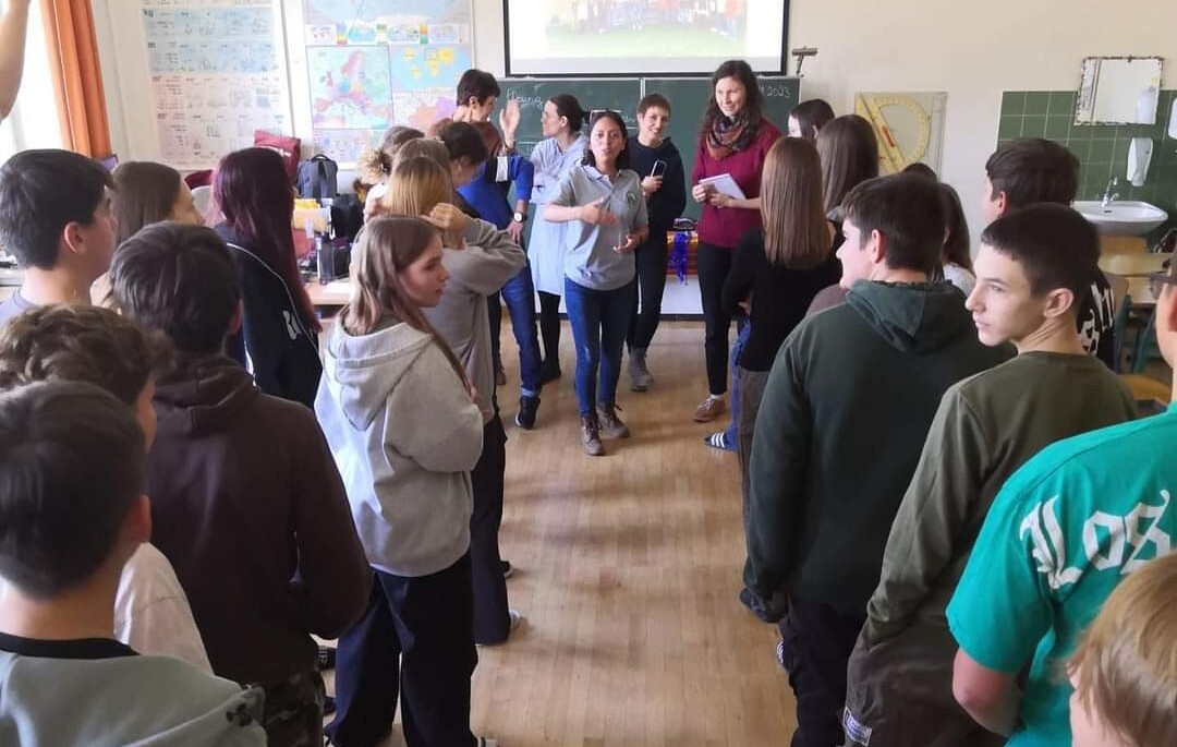 In spielerischer Form wurde die doch ernste Thematik zwi­schen­durch auf­ge­lock­ert und die Schüler/innen waren mit vollem Eifer dabei.