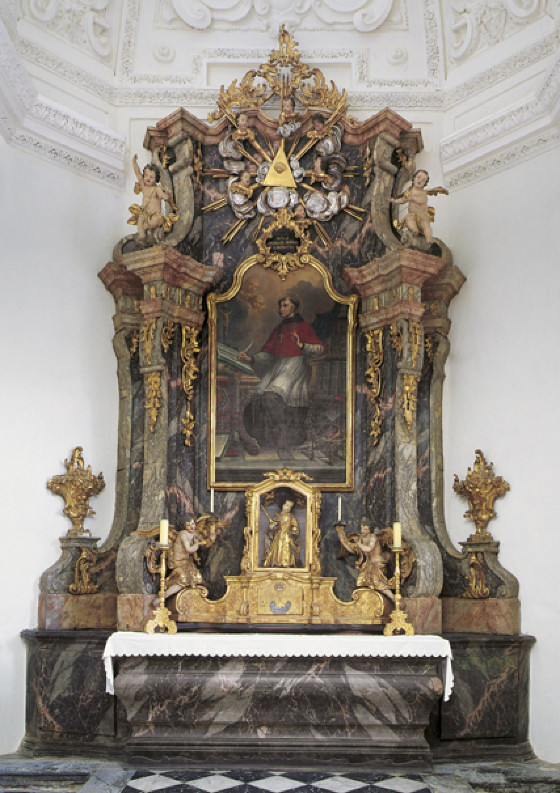 Die nördlich an den Chorraum anschließende, rechteckige Sakristei wurde 1636/37 errichtet, ein in die Südwand eingelassenes Marmorlavabo ist auf 1637 datiert.