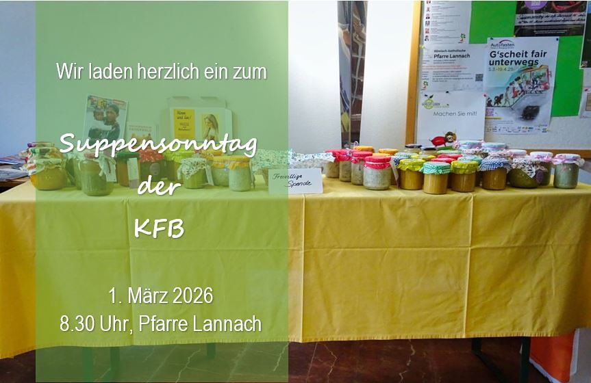 Die Katholische Frauenbewegung lädt herzlich zum Suppensonntag am 1. März um 8.30Uhr (Hl. Messe) ein!
