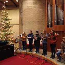 Der Kirchenchor, begleitet von Flöte, Geigen und Orgel sorgte für weihnachtliche Stimmung.