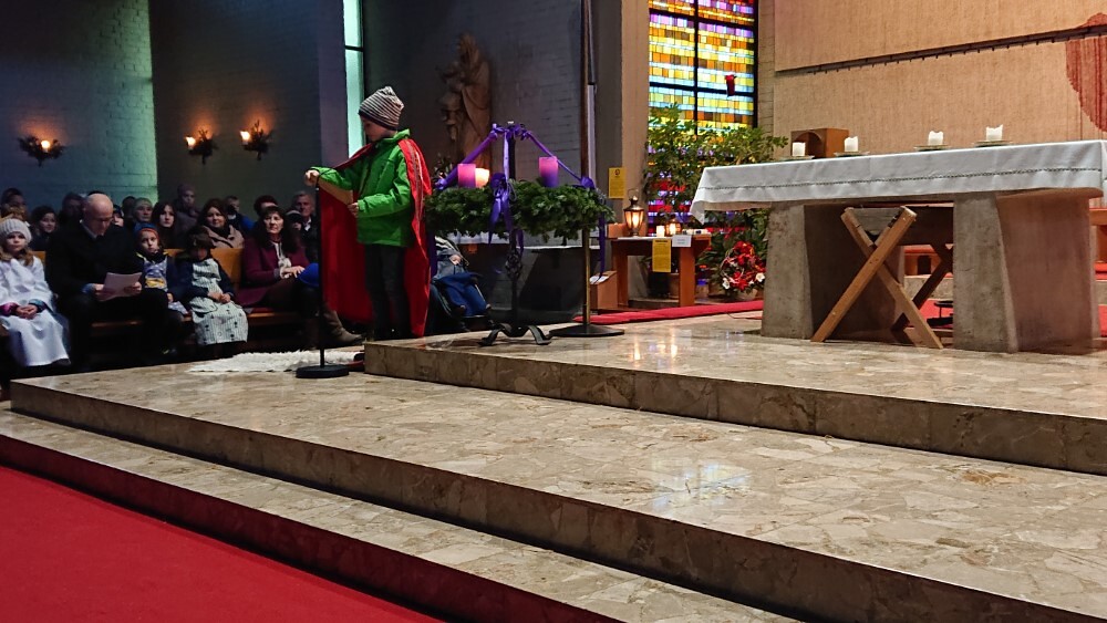 Tina Fegerl hat mit den Kindern in vielen Proben wieder ein tolles Krippenspiel einstudiert und eine besinnliche Andacht vorbereitet. Musikalisch begleitet wurde es von eine Bläsergruppe von klein bis groß.