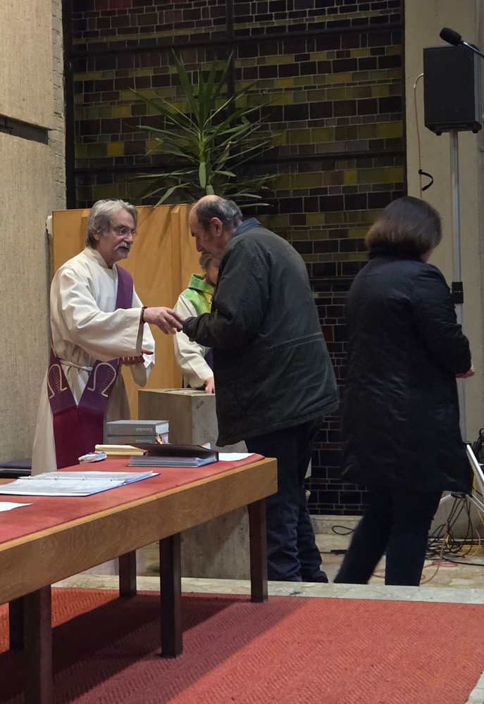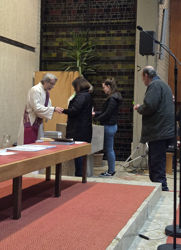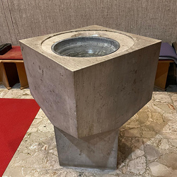 Jesus selbst ist das lebendige Wasser, das alle stärkt und neues Leben schenkt. Das Kreuzzeichen, das die Liturgen mit dem Wasser aus dem Taufbecken in unsere offene Hand zeichnen, erneuert unsere Taufe. Es soll uns daran erinnern, dass wir von Gott angenommen sind.