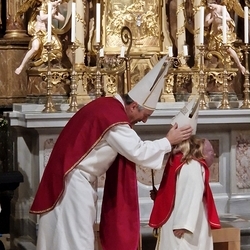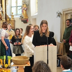 Voll Dankbarkeit und Freude feierten wir das diesjährige Erntedankfest in unserer mit großen und kleinen Leuten gut gefüllten Kirche. Vikar Norbert Glaser zelebrierte die heilige Messe, assistiert von Diakon Michi Zepf und sieben tüchtigen Minis.