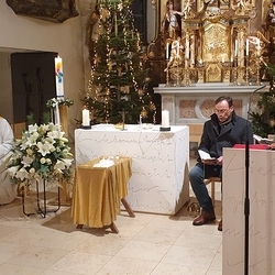 Um 21 Uhr feierten WGF-Leiterin Christa und Diakon Franz Habith in unserer Kirche die Christmette als Wort-Gottes-Feier mit Kommunionspendung.