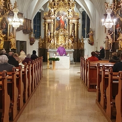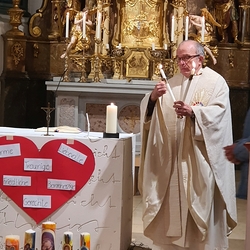 - Zuerst wurde in der Pfarrkirche mit einer Andacht gedankt.
