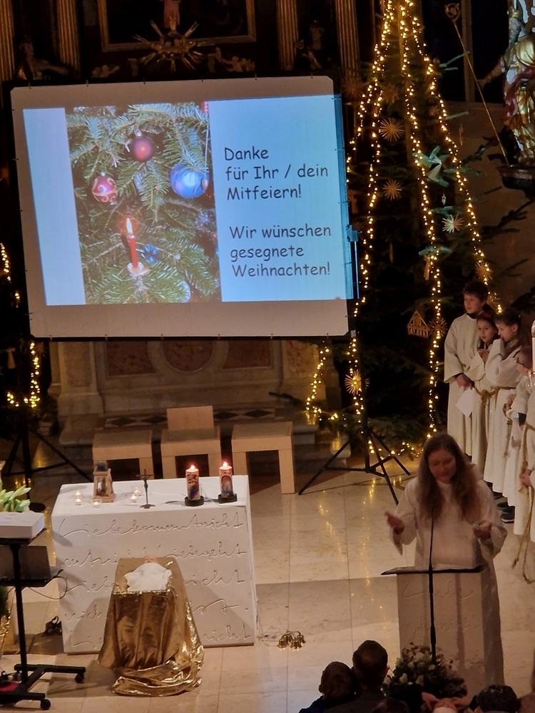 Liebevoll gestaltet war auch heuer wieder die Kinderkrippenfeier, die Pastoralreferentin Anja Asel mit vielen Kindern und Erwachsenen am Nachmittag des Heiligen Abends in unserer Pfarrkirche feierte. Schon vor der Feier erklangen Weihnachtslieder und stimmten alle auf das weihnachtliche Geschehen ein. Ein herzliches Danke an Anja und die mitwirkenden Minis sowie an unsere tolle Band für die stimmungsvolle Musik, die alle sehr begeisterte!