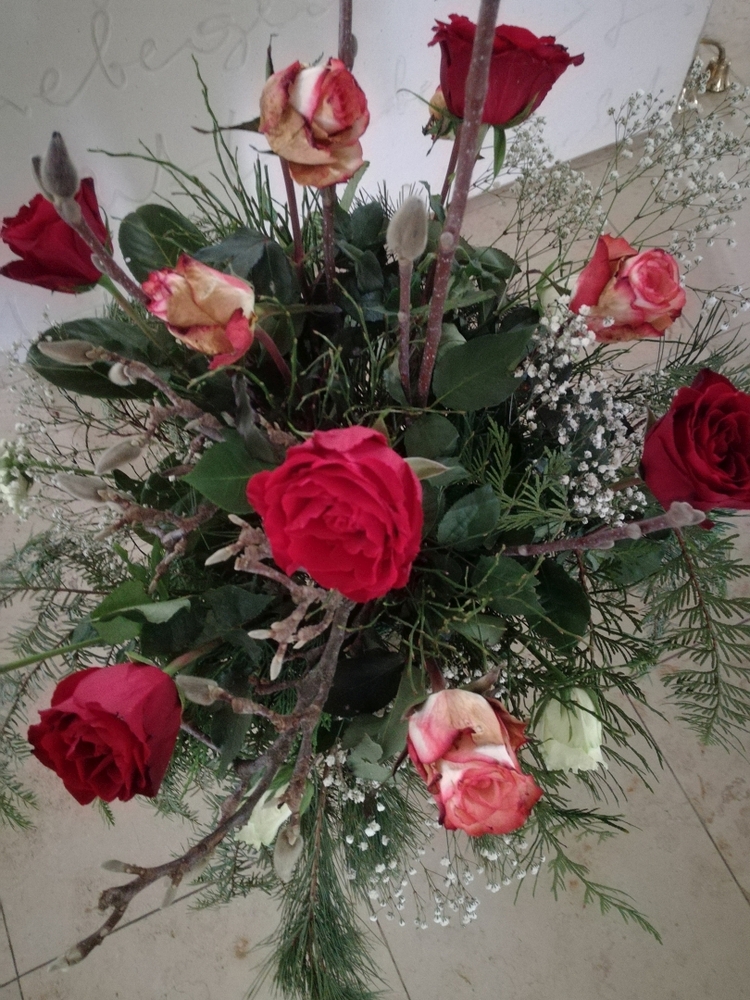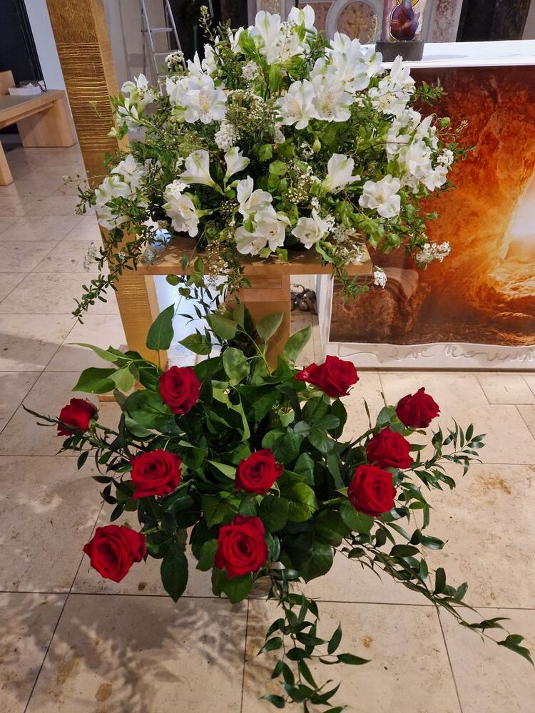Viele Rosen schmückten die Kirche beim Ehejubiläumsgottesdienst, den wir am 22. Oktober mit Vikar Norbert Glaser feiern durften.