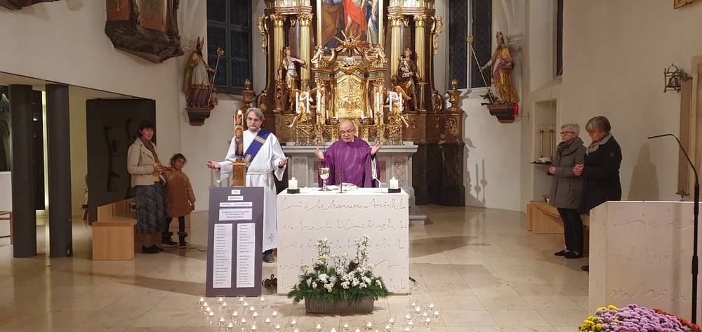 Am Allerseelentag feierte die Pfarrgemeinde mit Vikar Norbert Glaser und Diakon Michi Zepf am Abend den Allerseelengottesdienst.