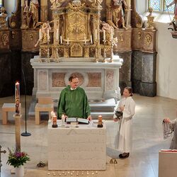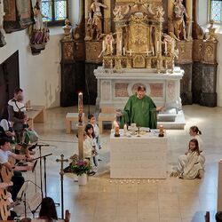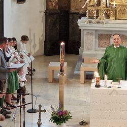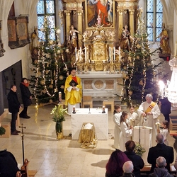 Der feierliche Gottesdienst mit Vikar Gerhard Hatzmann wurde vom Kirchenchor unter der Leitung unserer Organistin Magdalena Moser musikalisch gestaltet.