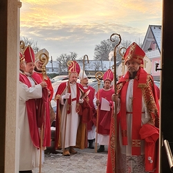 Auch die MINIS halfen mit und boten nach der Feier an den Ausgängen gegen eine freiwillige Spende ihre selbst gebackenen Allerheiligenstriezel an.