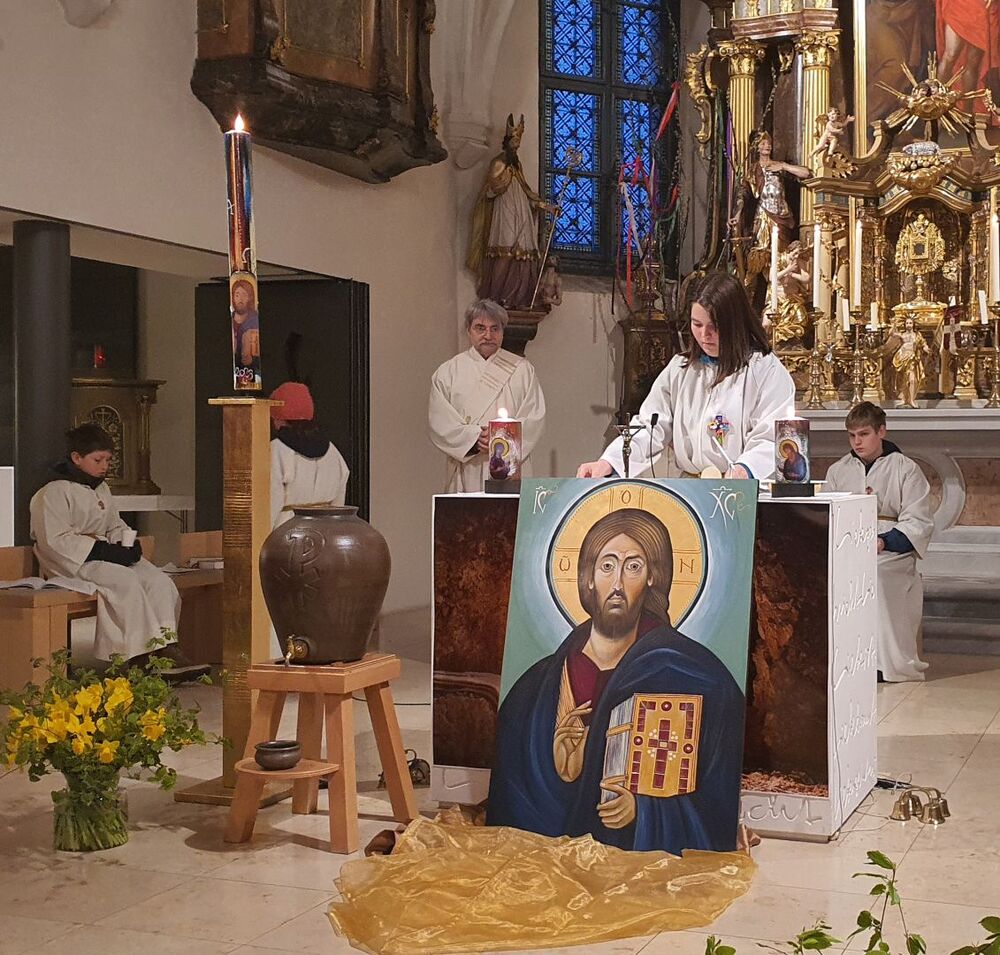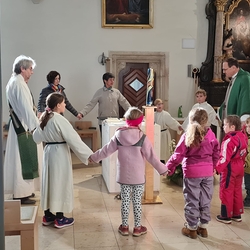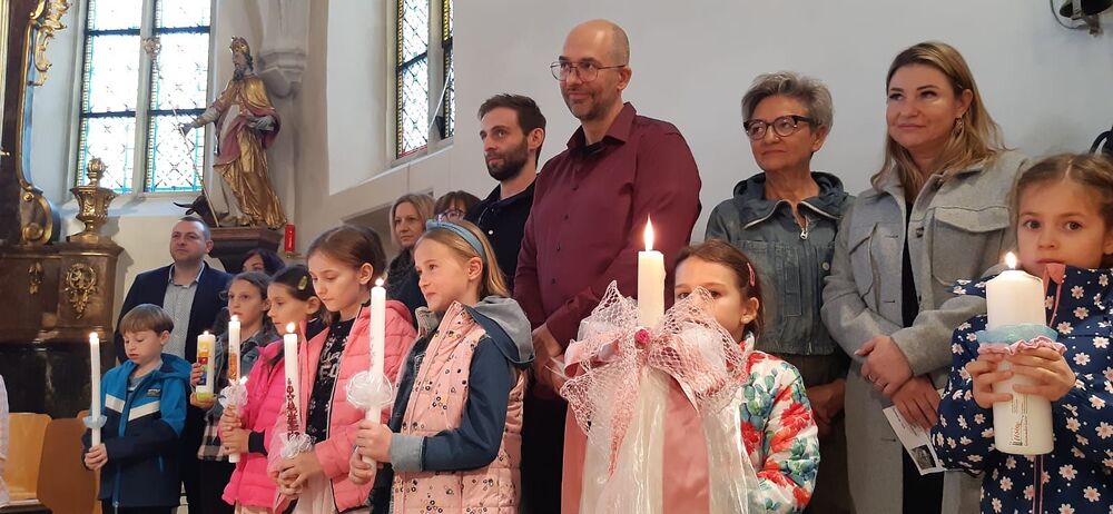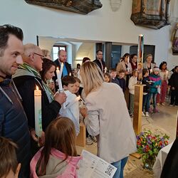 Am 22. April feierten die Erstkommunionkinder nach ihrem letzten Workshopnachmittag ihr Tauferneuerungsfest um 16:30 Uhr in unserer Pfarrkirche.