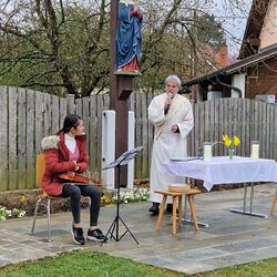 Dieses freudige Geschehen feierten wir am 2. April in großer Gemeinschaft auf unserem Kirchplatz. Diakon Michi Zepf zelebrierte und viele wirkten an der Gestaltung mit: die Musikgruppe, der Kirchenchor, Minis und JS (Passion), die Kindergartenkinder (Lieder), MS-Schülerinnen (Fürbitten) und die LJ (Palmbuschen). Danke allen fürs Kommen, Mitfeiern und Mithelfen!