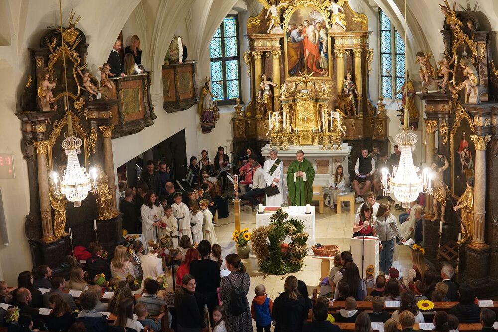 Ein herzliches Danke allen, die so schön mitgestaltet und mitgefeiert haben: Dies waren die Kindergartenkinder (Erntedank Tanz), die Minis und MS-Schüler*innen (Zeichenhandlung mit Erntegaben), die Landjugend (Erntekrone), die Musikgruppe (begeisternde Musik) und viele mehr.