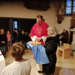 Der am Ende des Gottesdienstes gespendete „Blasiussegen“ möge vor Halskrankheiten schützen. (3. Februar, Gedenktag des hl. Blasius)