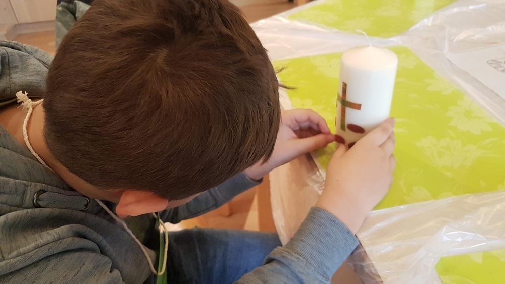 - Wir gestalten eine Erinnerungskerze zum Evangelium „5 Brote und 2 Fische“