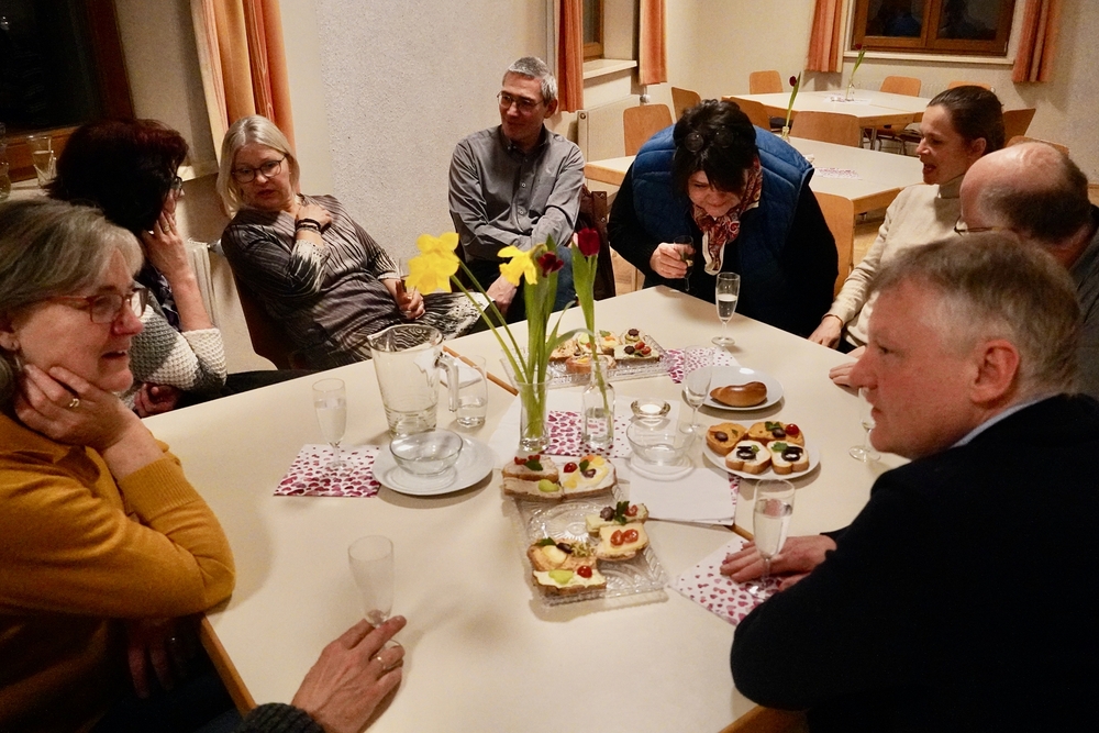 - Im Pfarrheim verwöhnten die hauptamtlichen Mitarbeiterinnen und Mitarbeiter alle Ehrenamtlichen mit Brötchen und Krapfen sowie mit Sekt und Orangensaft.