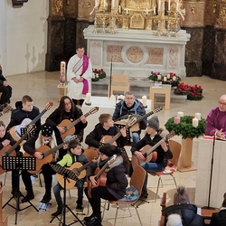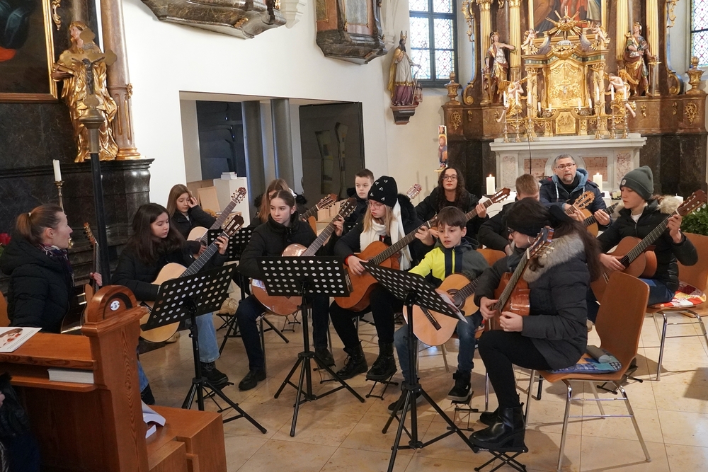 Gitarrenklänge erfüllten am Sonntag, dem 3. Dezember, den Kirchenraum bei der heiligen Messe, die Vikar Norbert Glaser und Diakon Franz Habith mit der Pfarrgemeinde feierten.