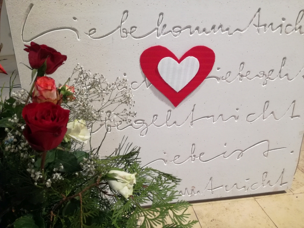 Die Rose als Sinnbild begleitete uns auch durch die ganze Feier. Mit ihrer Schönheit, ihrer Blütenpracht, ihrem Duft, den grünen Blättern, aber auch mit ihren Dornen vereint sie Gegensätze in sich. Sie ist Zeichen der Liebe und kann für unser Zusammenleben stehen.