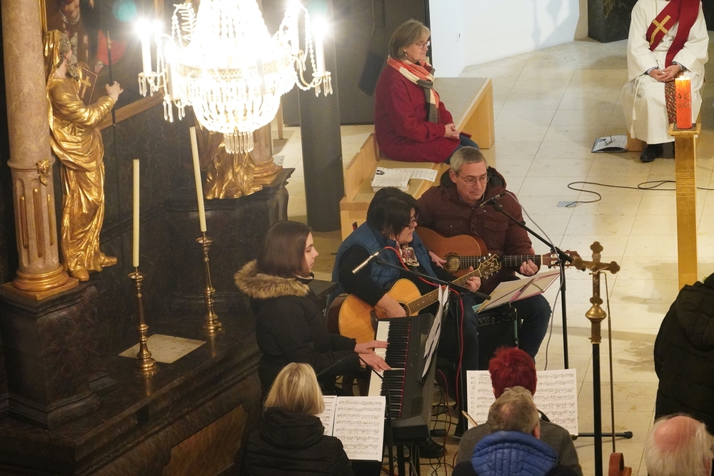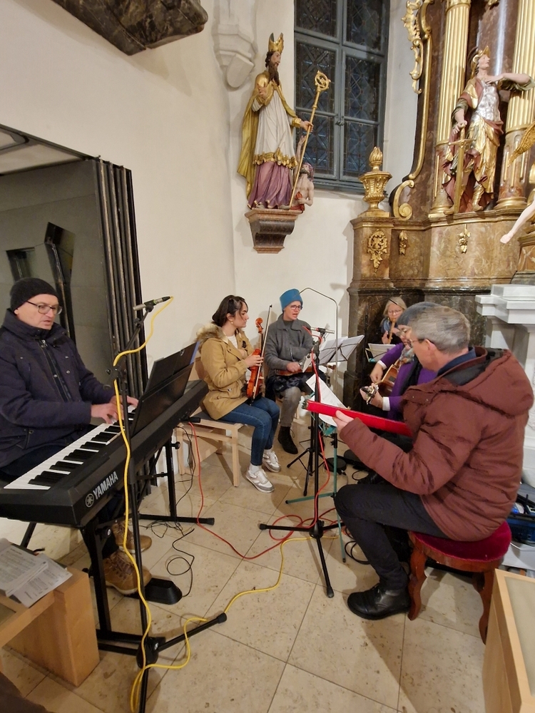 •    an die sechs Musiker, die in ihrer Freizeit unseren Gesang unterstützten und den Gottesdienst feierlich mitgestalteten: Chiara und Katharina Guggi-Bärnthaler (Querflöte), Helma Arjmand (Geige), Ursula Schrei (Gitarre), Maria Kleindienst (Gitarre) und Michael Krenn (Bass)