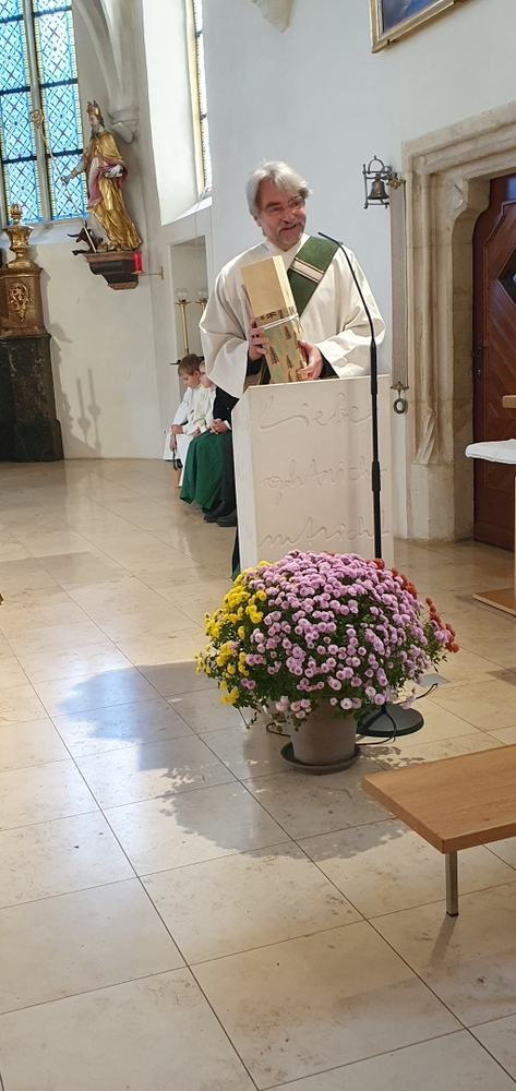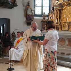 Nach herzlicher Begrüßung durch Diakon Michi Zepf zelebrierte Markus, der ehemals Pastoralpraktikant in unserer Pfarre und Pastoralreferent im Seelsorgeraum Kaiserwald gewesen war, in festlichem Rahmen die heilige Messe.
