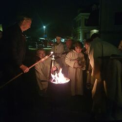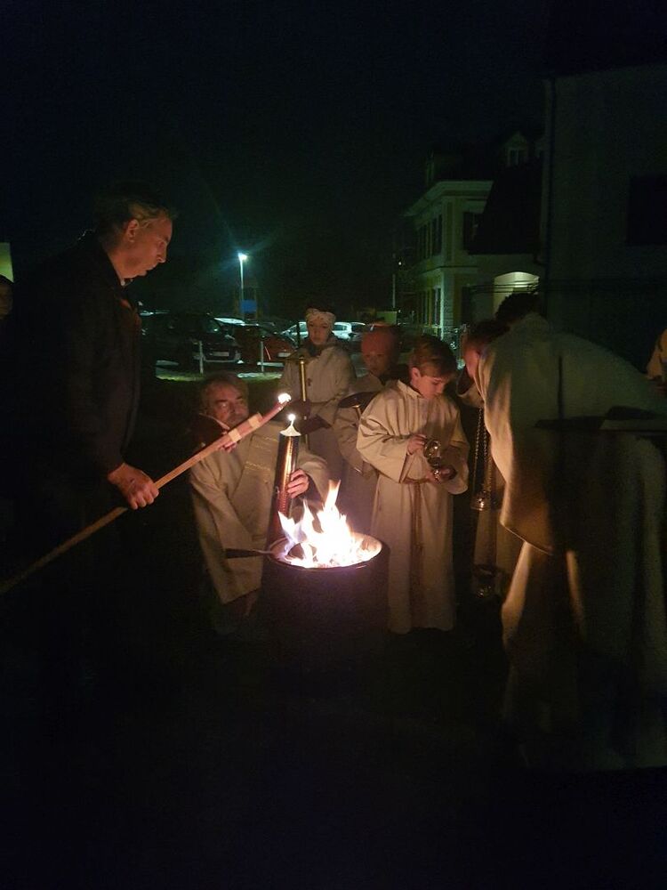 Danach entzündeten die Taufpaten die Taufkerzen der Kinder an der Osterkerze und erneuerten ihr Patenamt vor ihren Schützlingen.