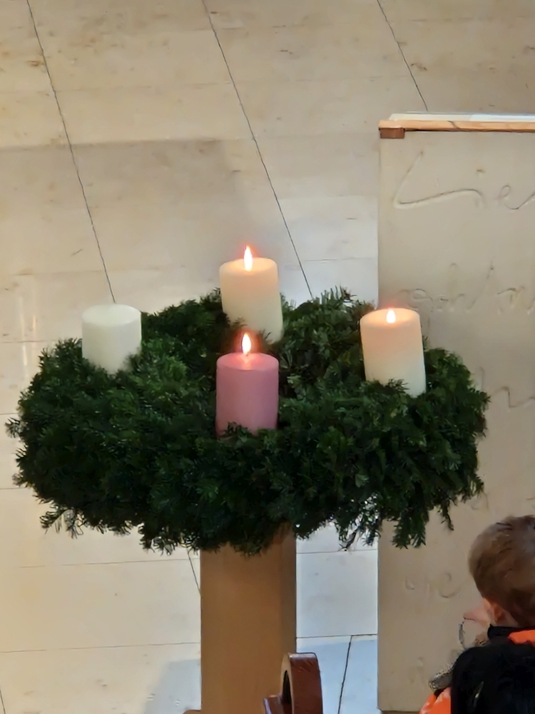 Die rosafarbene Kerze am Adventkranz macht es deutlich, sie erstrahlt als Zeichen der Vorfreude auf das bevorstehende Weihnachtsfest.