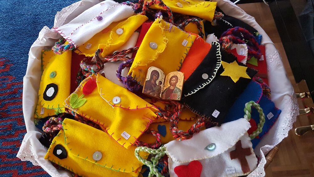 Als Erinnerung an das Versöhnungsfest bekamen die Kinder von ihren Eltern ein Diptychon, ein Doppelbild von Maria und Jesus, geschenkt, das mit den Filztaschen gemeinsam überreicht wurde.