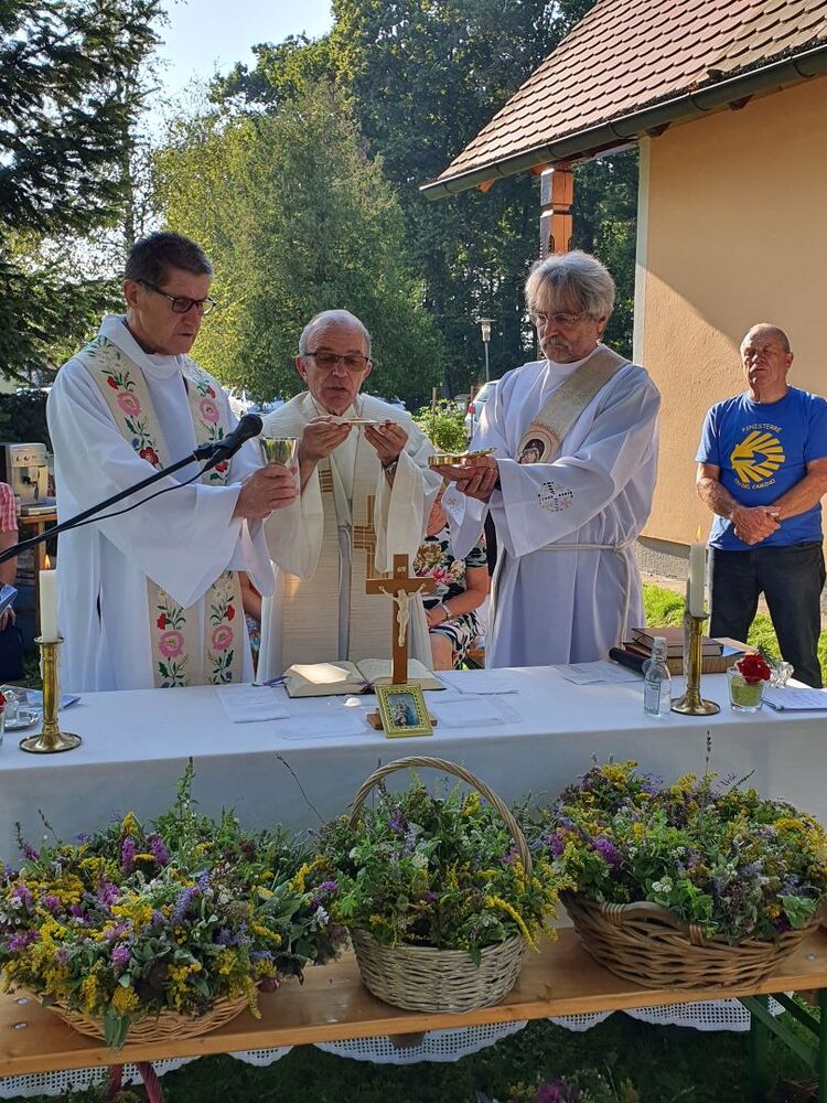Auch die mitgebrachten Kräuterbüschel wurden anlässlich des bevorstehenden Marienfeiertages gesegnet.