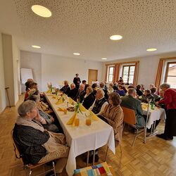 Bei einer gemütlichen Agape im Pfarrheim gab es dann noch angeregte Diskussionen über unseren eigenen kleinen möglichen Beitrag zum Weltfrieden.