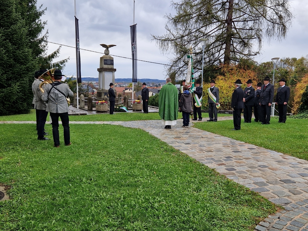 Pfarrer Claudiu Budau zelebrierte die heilige Messe und sprach das Segensgebet beim Kriegerdenkmal, wo als Zeichen der Wertschätzung im Anschluss an die Rede von Obmann Josef Gerlza auch ein Kranz niedergelegt wurde.