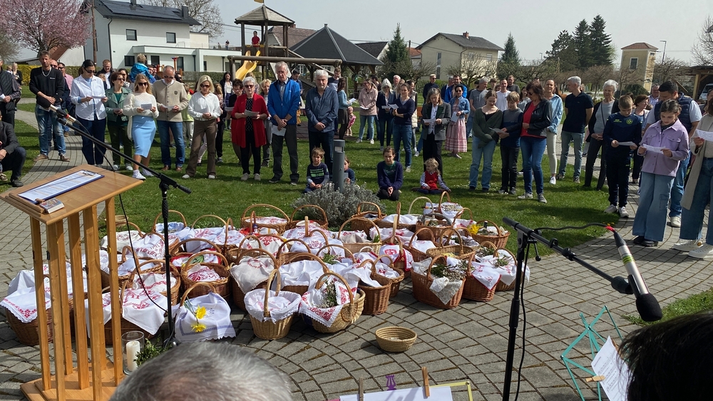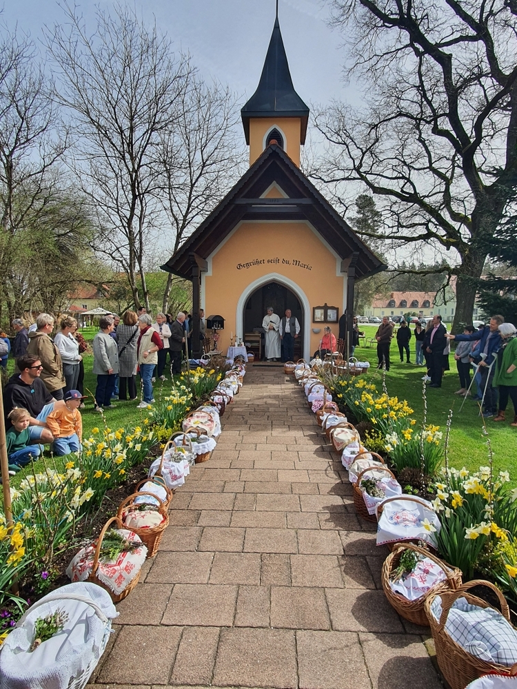 Ein Fixpunkt im Kirchenjahr ist für viele Christinnen und Christen die Osterspeisensegnung. Auch in unserer Pfarre kommen immer viele Menschen zu den einzelnen Stationen, so auch heuer wieder am Karsamstag.