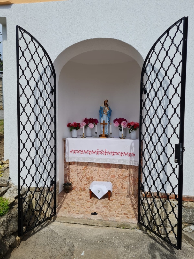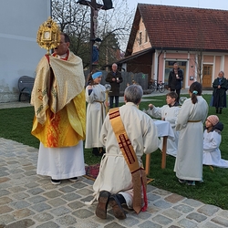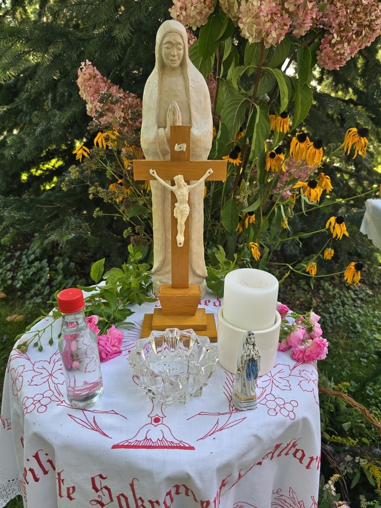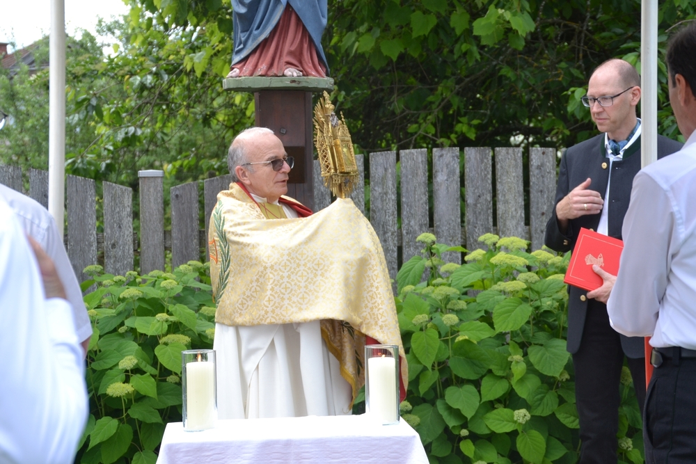 Eine Besonderheit gab es beim 1. Altar: Dort segnete Vikar Norbert Glaser zusätzlich die neue Marienstatue in der frisch renovierten „Hoferkapelle“.