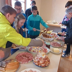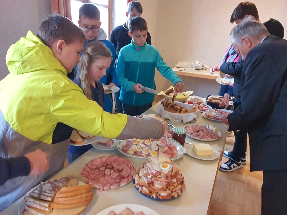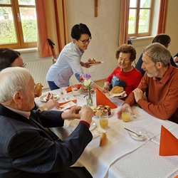 Nach der schönen Feier folgten viele der Einladung des PGR zum Osterfrühstück im Pfarrheim und genossen in österlicher Stimmung das Essen und die Gemeinschaft!