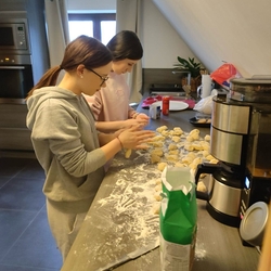 In einer gemeinsamen Backstunde haben wir am Tag zuvor kleine Köstlichkeiten zubereitet, die wir am Ende der Feier an die Gottesdienstbesucher*innen verteilen durften.