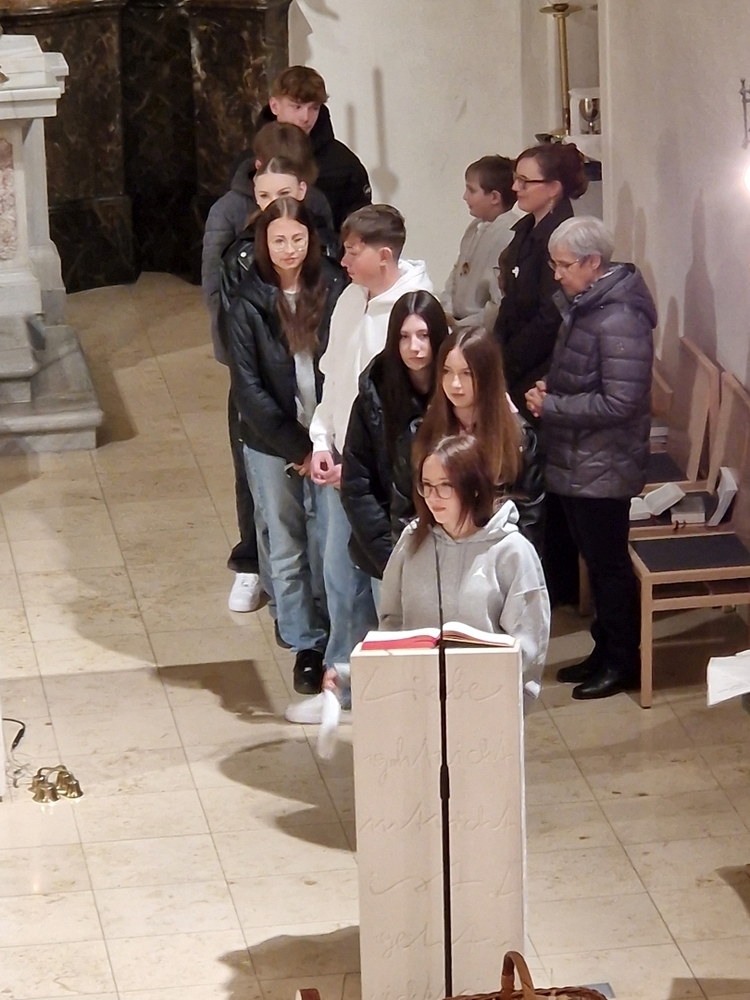 Unsere Firmgruppe, bestehend aus neun Firmlingen, hat am Samstag, dem 2. März, die Abendmesse in der Pfarrkirche Premstätten mitgefeiert. Wir haben persönliche Fürbitten vorbereitet, die von den Firmlingen bei der heiligen Messe, die Kanonikus Friedrich Trstenjak zelebrierte, vorgetragen wurden.
