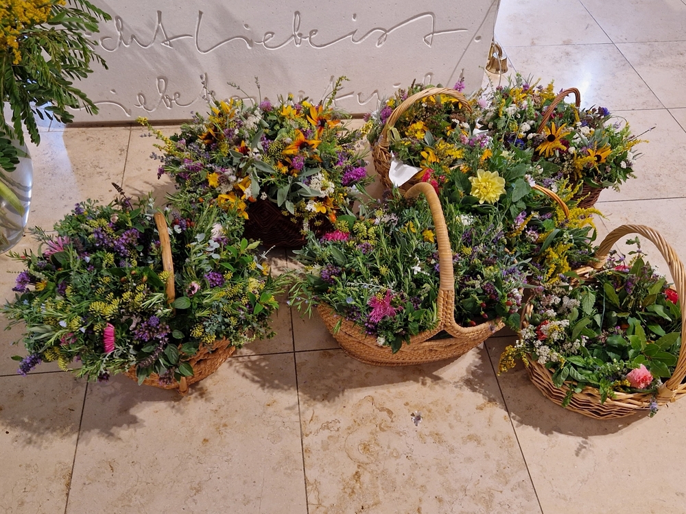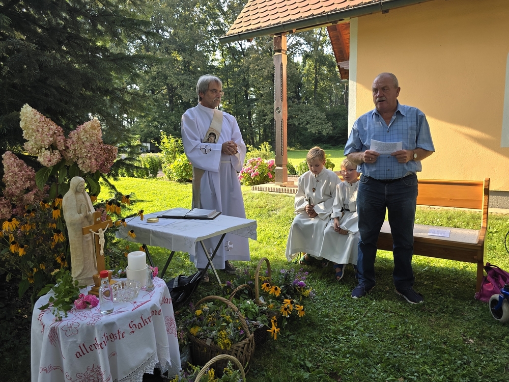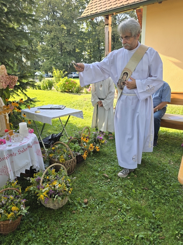 Zur Ehre der Gottesmutter und der Schöpfung segnete Diakon Michi Zepf am 15. August, dem "Großen Frauentag“, in einer Wort-Gottes-Feier in der Kaiserwald-Kapelle die mitgebrachten Kräuterbüschel.