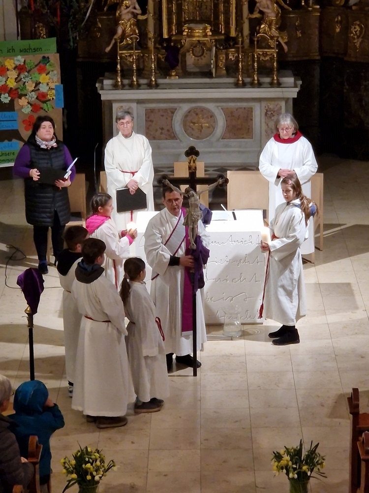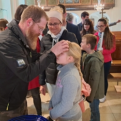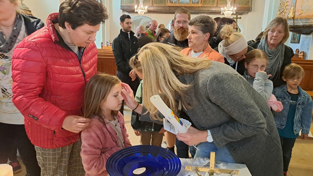 Beim Aschermittwoch-Gottesdienst mit Vikar Norbert Glaser und Diakon Michi Zepf erhielten die vielen Gläubigen, die gekommen waren, das Aschenkreuz auf die Stirn gezeichnet. Es ist ein starkes sichtbares Zeichen, das „hautnah“ an die Vergänglichkeit erinnert und uns auffordert, im Einklang mit dem Evangelium zu leben.