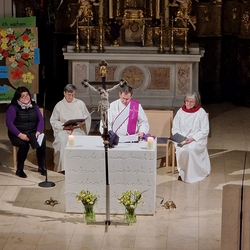 Die Ängste und Sorgen vieler Menschen unserer Zeit wurden in die Feier aufgenommen und in den großen Fürbitten vor Gott gebracht. Er möge allen Bedrängten beistehen, Kriege, Not und Elend beenden!