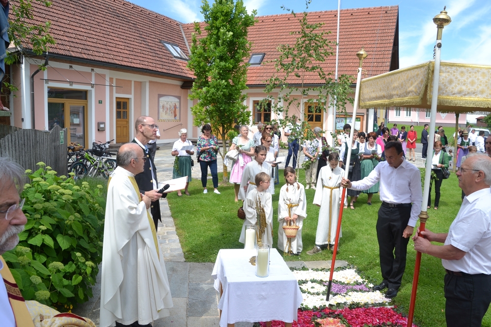 Ein herzliches DANKE allen, die liturgisch mitgewirkt haben, dass das Fronleichnamsfest so festlich und gemeinschaftlich gefeiert werden konnte. Danke auch den Vereinen - der MUZ, der FF und dem ÖKB - für ihr Dasein und Mitfeiern!