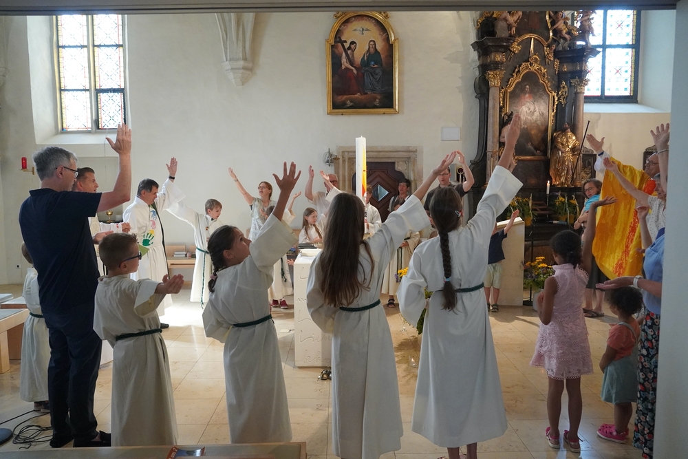 Einen bunten Familiengottesdienst, zu dem speziell die Taufkinder des letzten Jahres eingeladen waren, feierten Vikar Norbert Glaser und Diakon Michi Zepf mit Klein und Groß am 16. Juni in unserer Kirche.