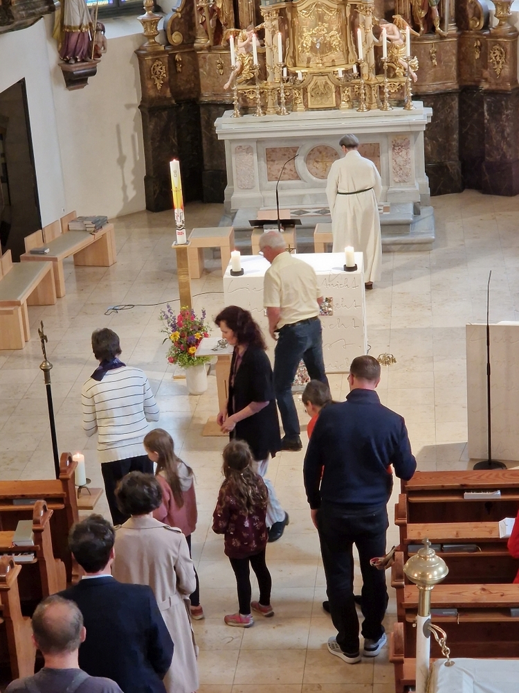 Ein besonderes Highlight war das gegenseitige „Segnen“ als Abschluss des Festes, bei dem die ganze Familie der Erstkommunionkinder sich gegenseitig etwas Gutes wünschte.