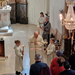 • Vigilfeier mit den Firmlingen am Freitag vor Pfingsten mit Schwester Maria und Vikar Gerhard Hatzmann