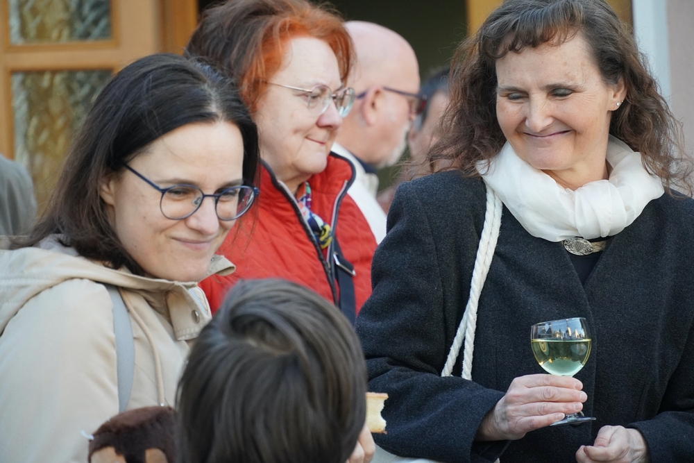 Bei der anschließenden Agape mit Brot und Wein auf dem Kirchplatz gab es dann für alle die Gelegenheit, persönlich mit Vikar Norbert Glaser auf seinen Geburtstag anzustoßen.